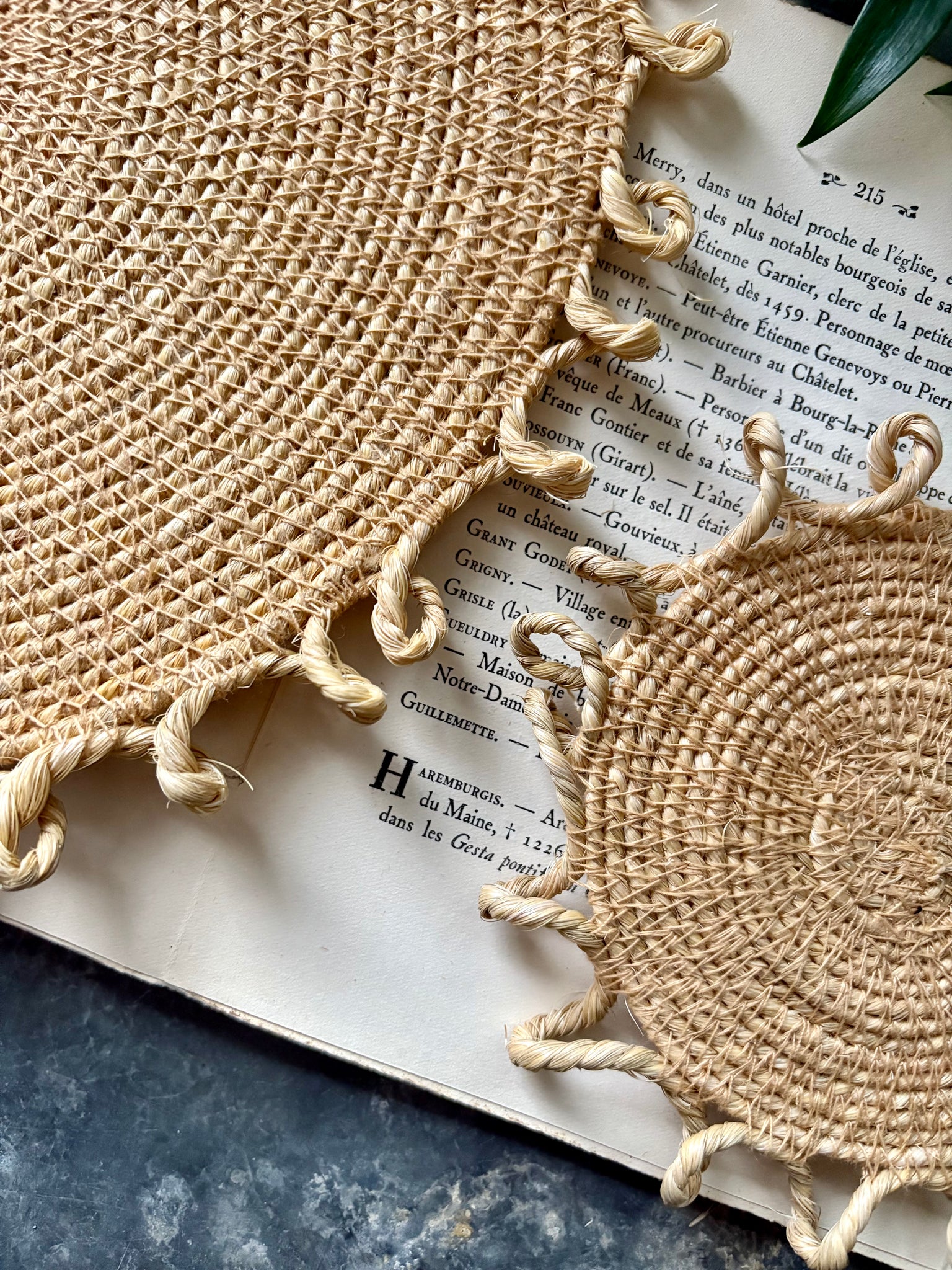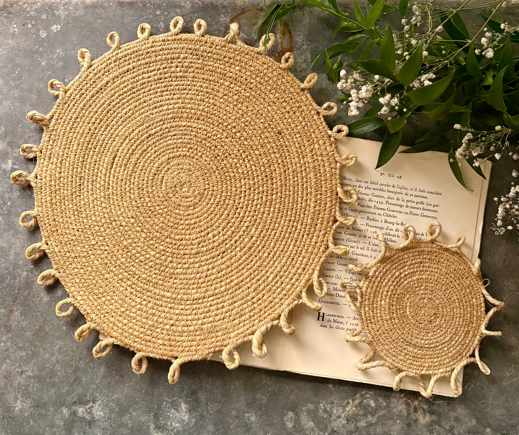 Beautiful and simple jute placements and matching coasters. Perfect for your Christmas table scape. Placemats - 27cm Coasters - 14cm