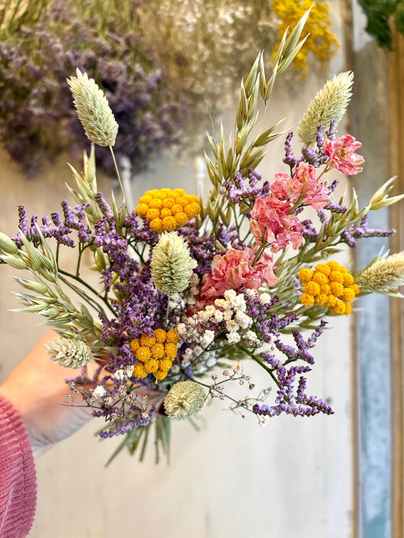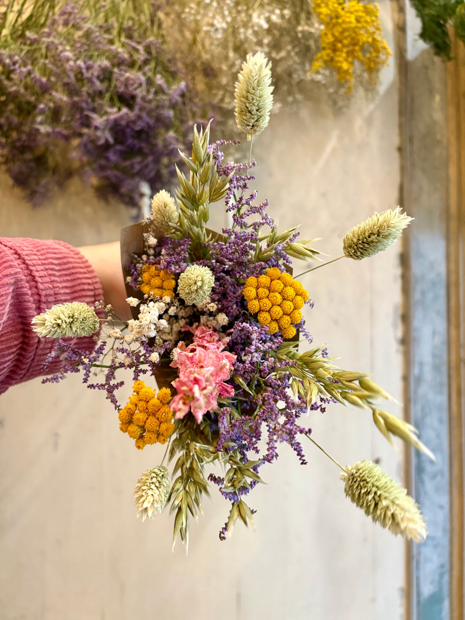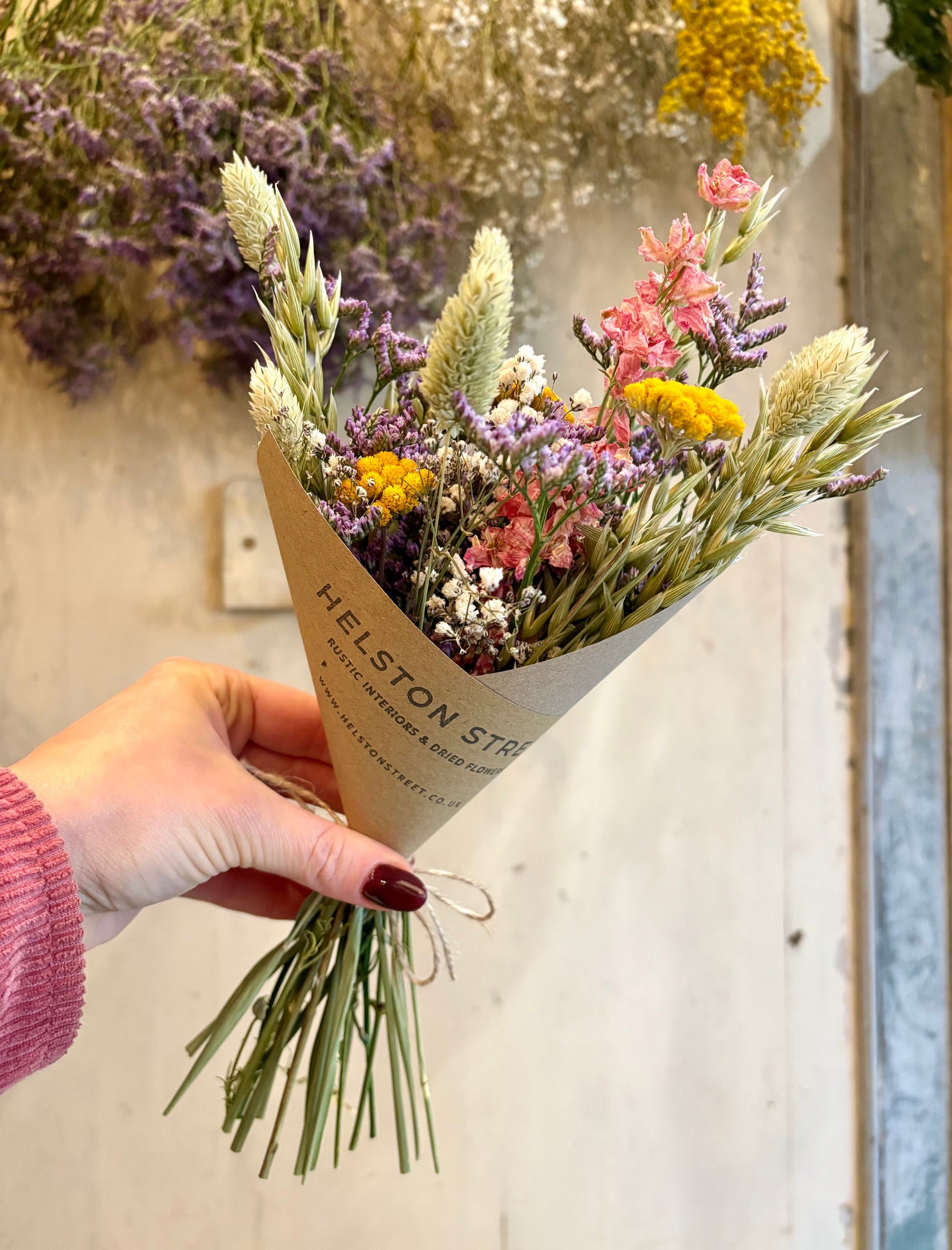 A selection of our beautiful hand dried flowers, carefully put together by hand in the shop in a fresh spring colour palette.